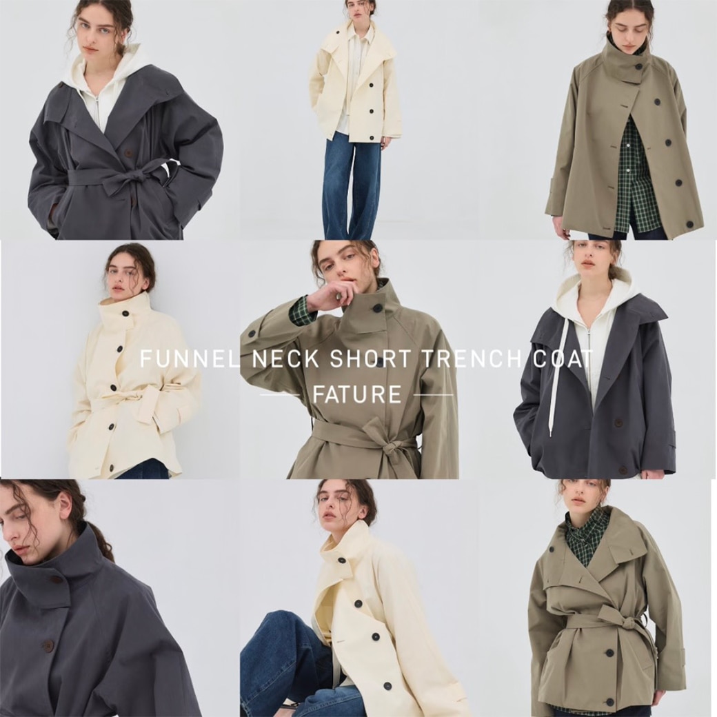ファンネルネックショートトレンチコート