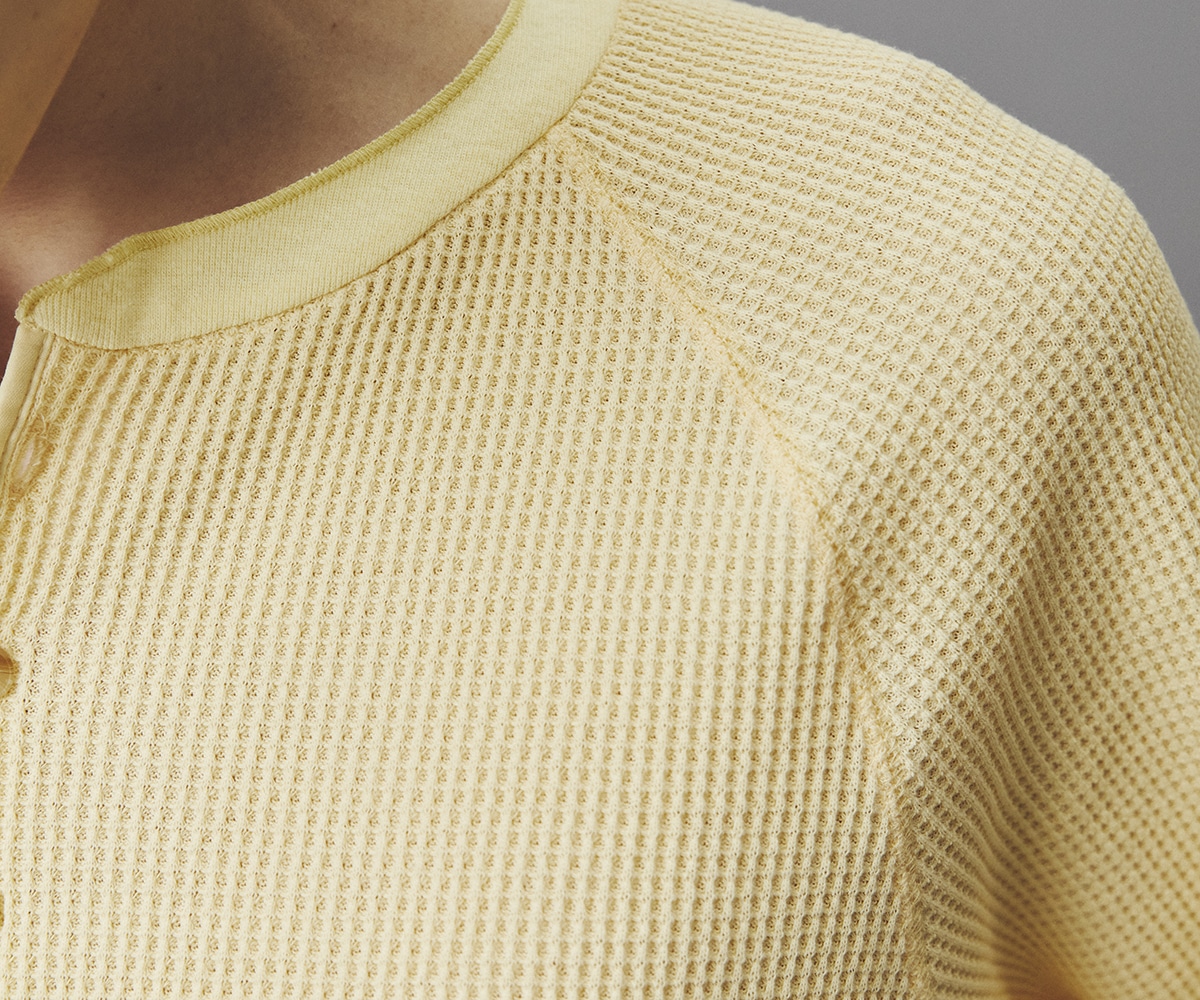 空紡糸(くうぼうし)を使用したワッフル素材。