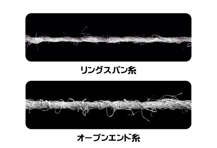 逆に欧米や古着のデニムなどはこのオープンエンド糸で、空気の噴射(空気の風圧)で糸を撚っていくため見た目は粗野でヴィンテージ感があります。