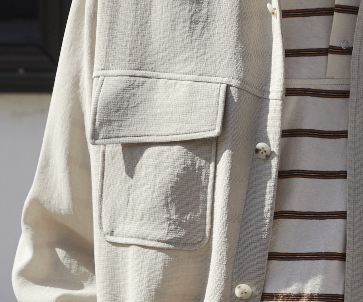 “ミリタリー要素を無くした”ファティーグシャツ。 メンズらしいディテールはそのままに、さらりとした素材でどんな服にも馴染む一枚に。