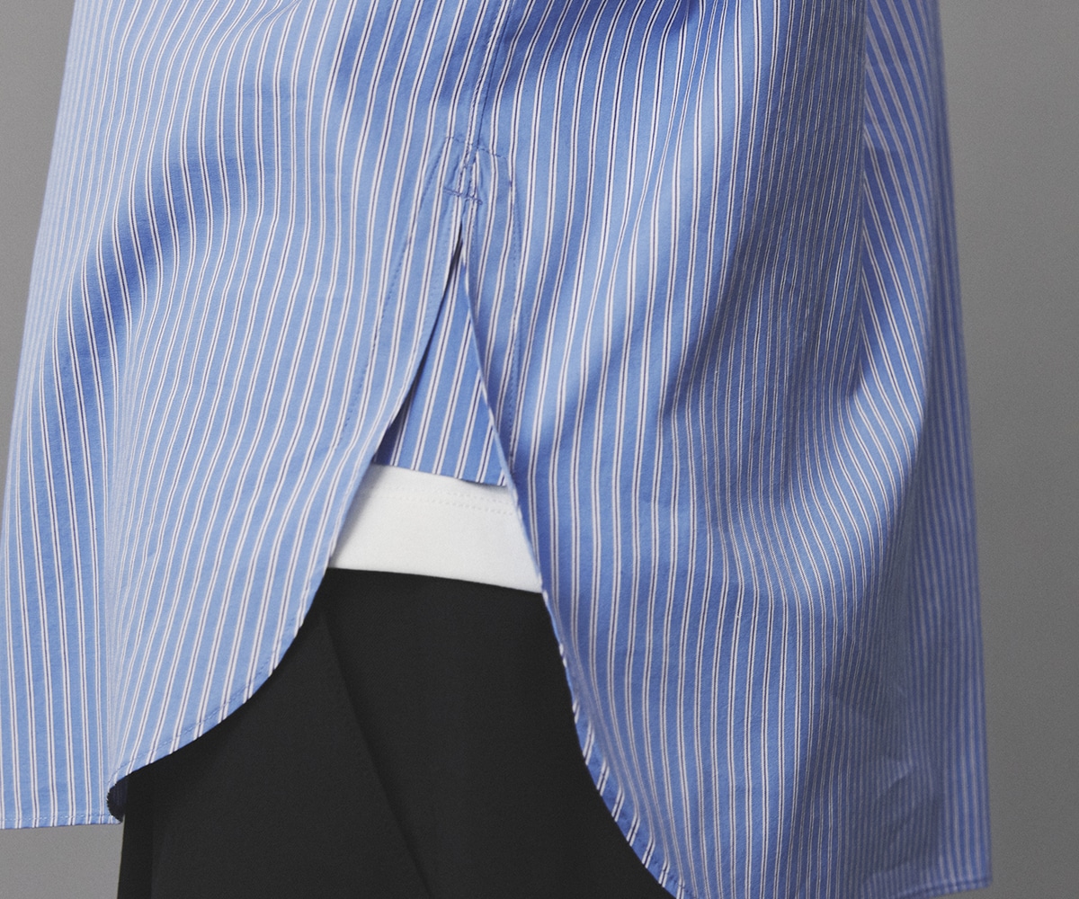 シャツの裾、前身頃と後身頃の縫い合わせ部分には、力が集中します。