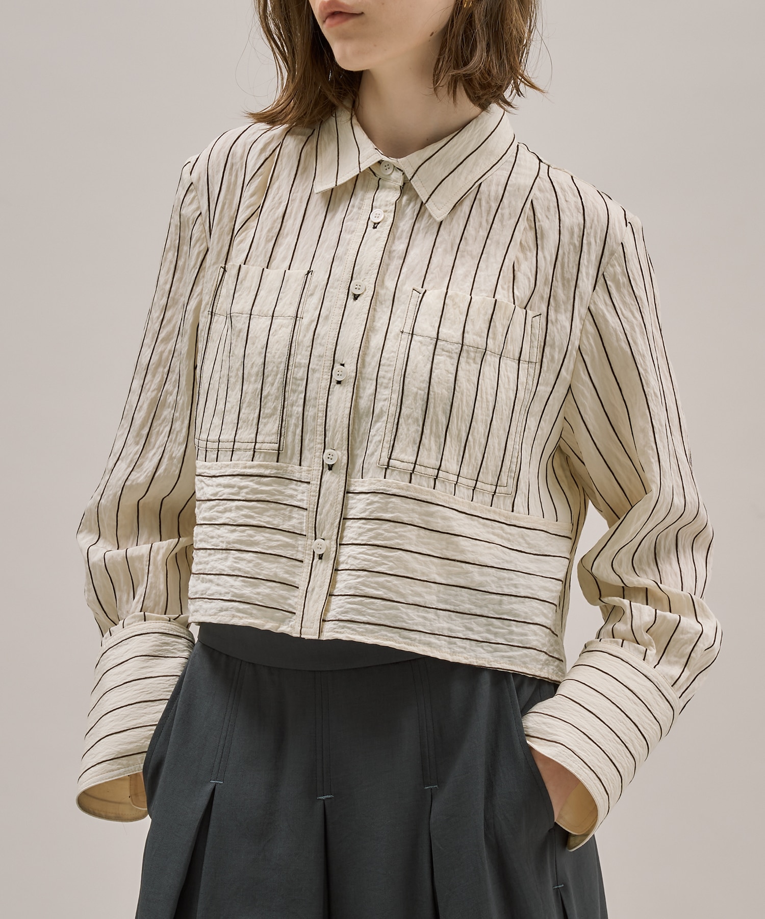 ・前はショート丈でどんなボトムにも合わせやすく、後ろはフレア感のあるデザイン。