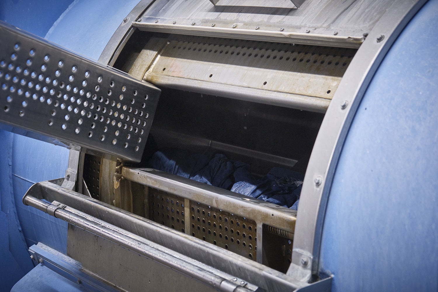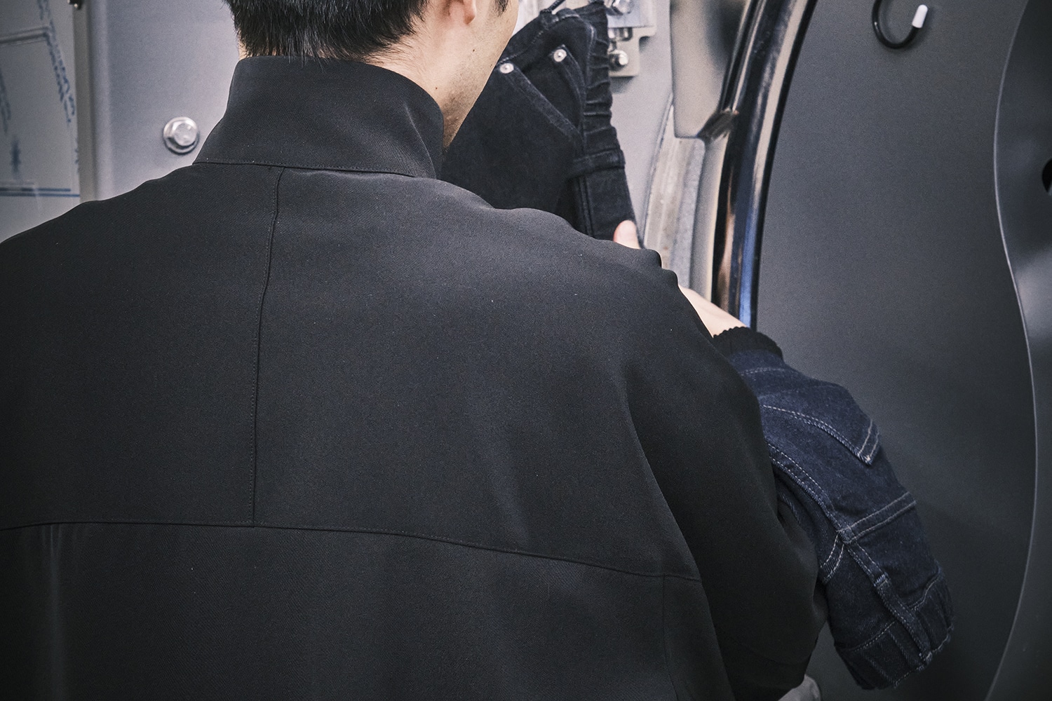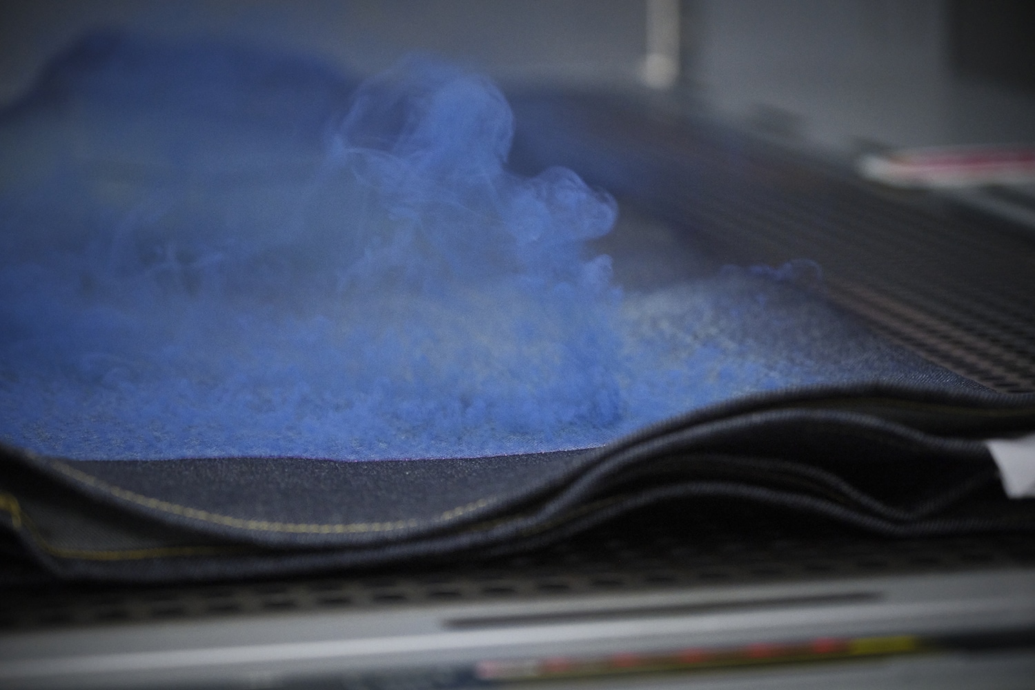 縫い上がった直後のデニムは、まだ素の状態。 そこから洗い、染め、乾燥といった工程を重ねることで、色落ちや濃淡、奥行きのある表情を引き出していきます。 多様な表情を生み出せるのは、この工程があるからこそです。