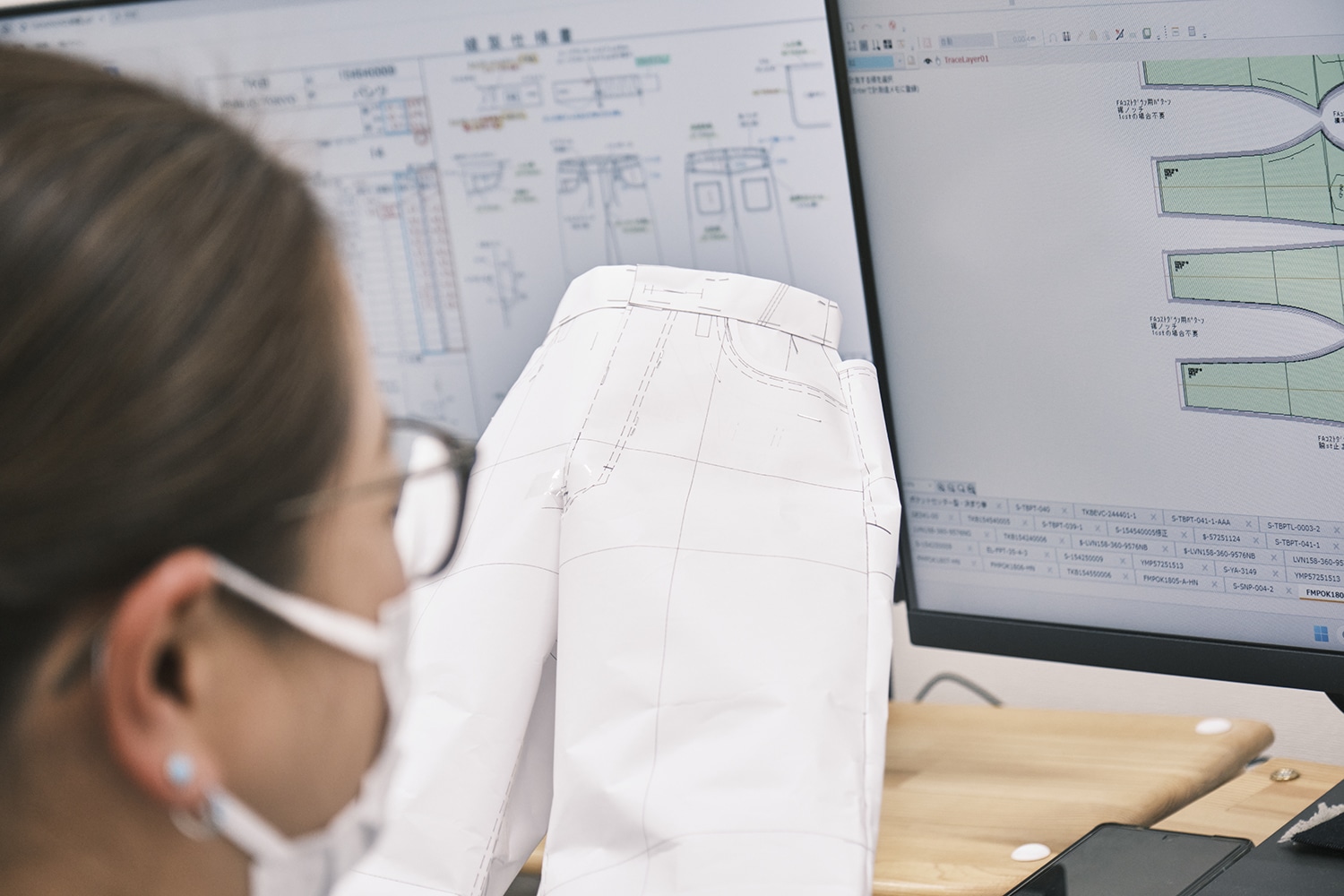 見た目の美しさだけでなく、穿いたときの落ち方や動きやすさまで、この組み立ての精度に大きく左右されます。