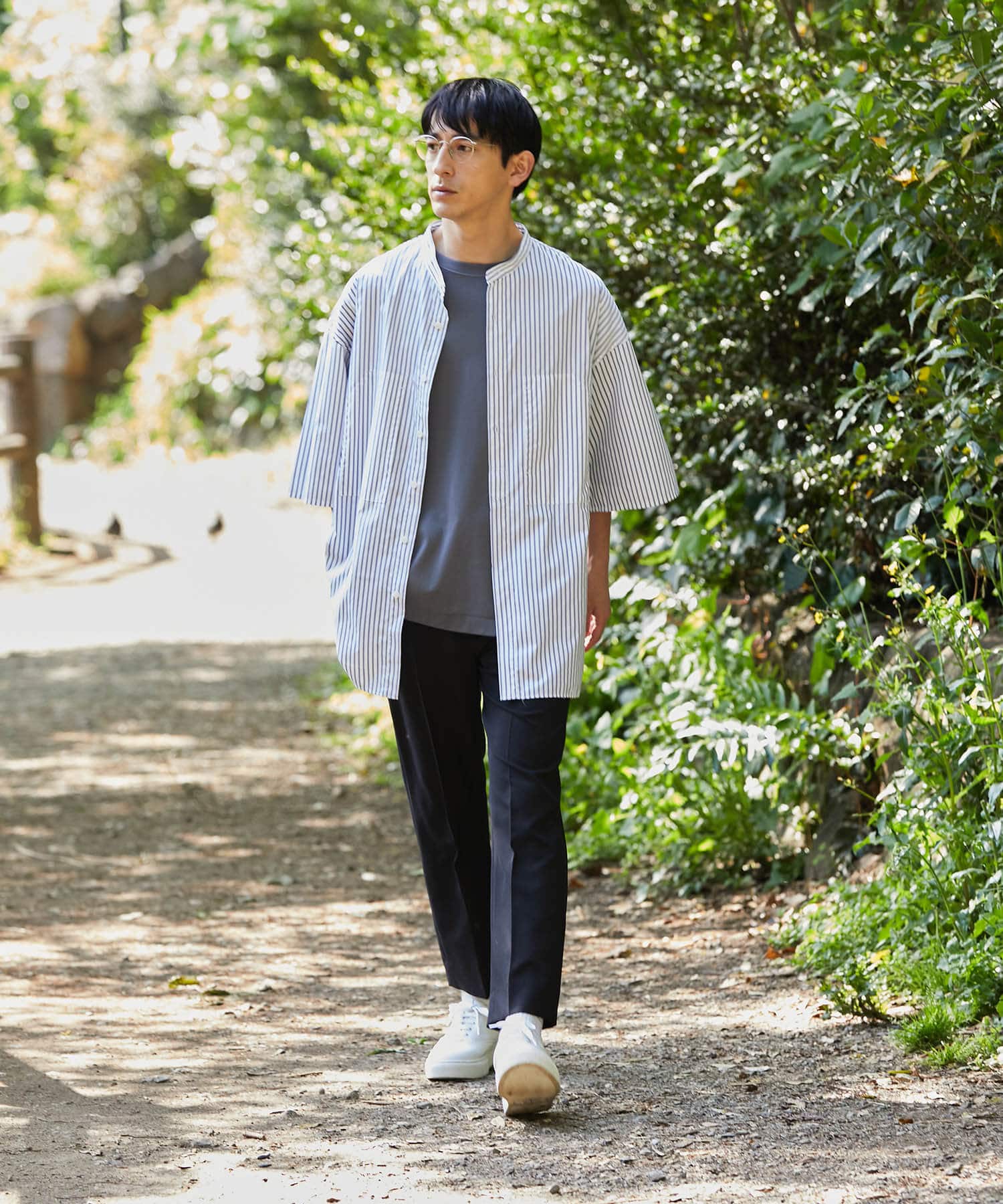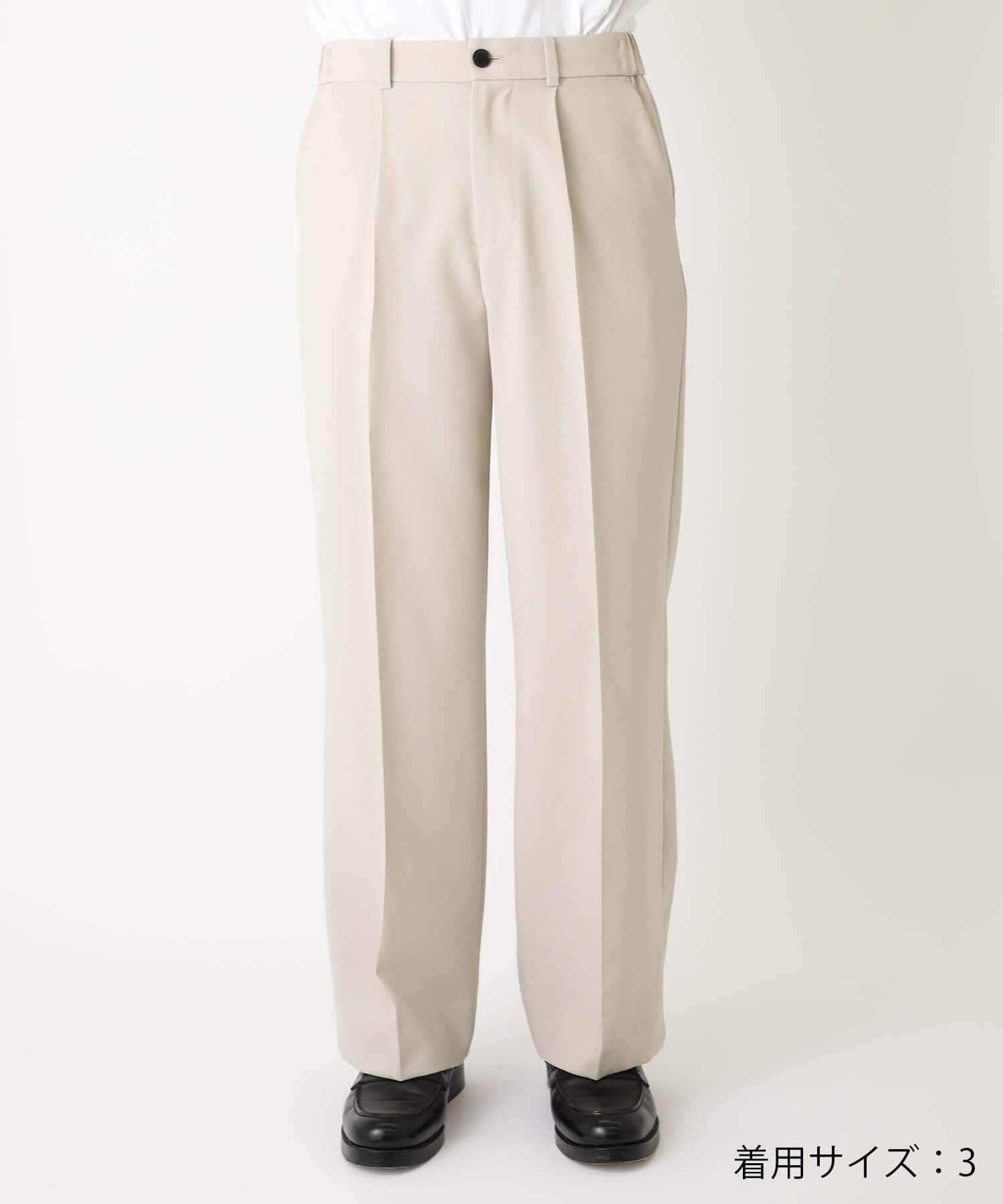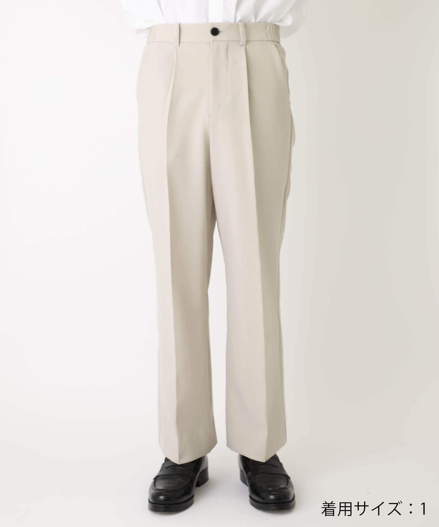 今期より新たに登場した、程良い緩さのワイドテーパードシルエット。ウエスト周りにゆとりがあるので、太腿やお尻周りがガッチリした男性の方でも、美しいシルエットで履いて頂ける一本です。